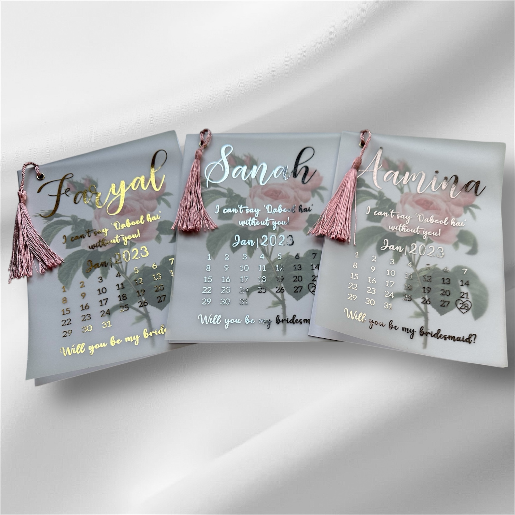 Personalise your bridesmaid proposal card with the name of your bridesmaid, your chosen words and date of your wedding.